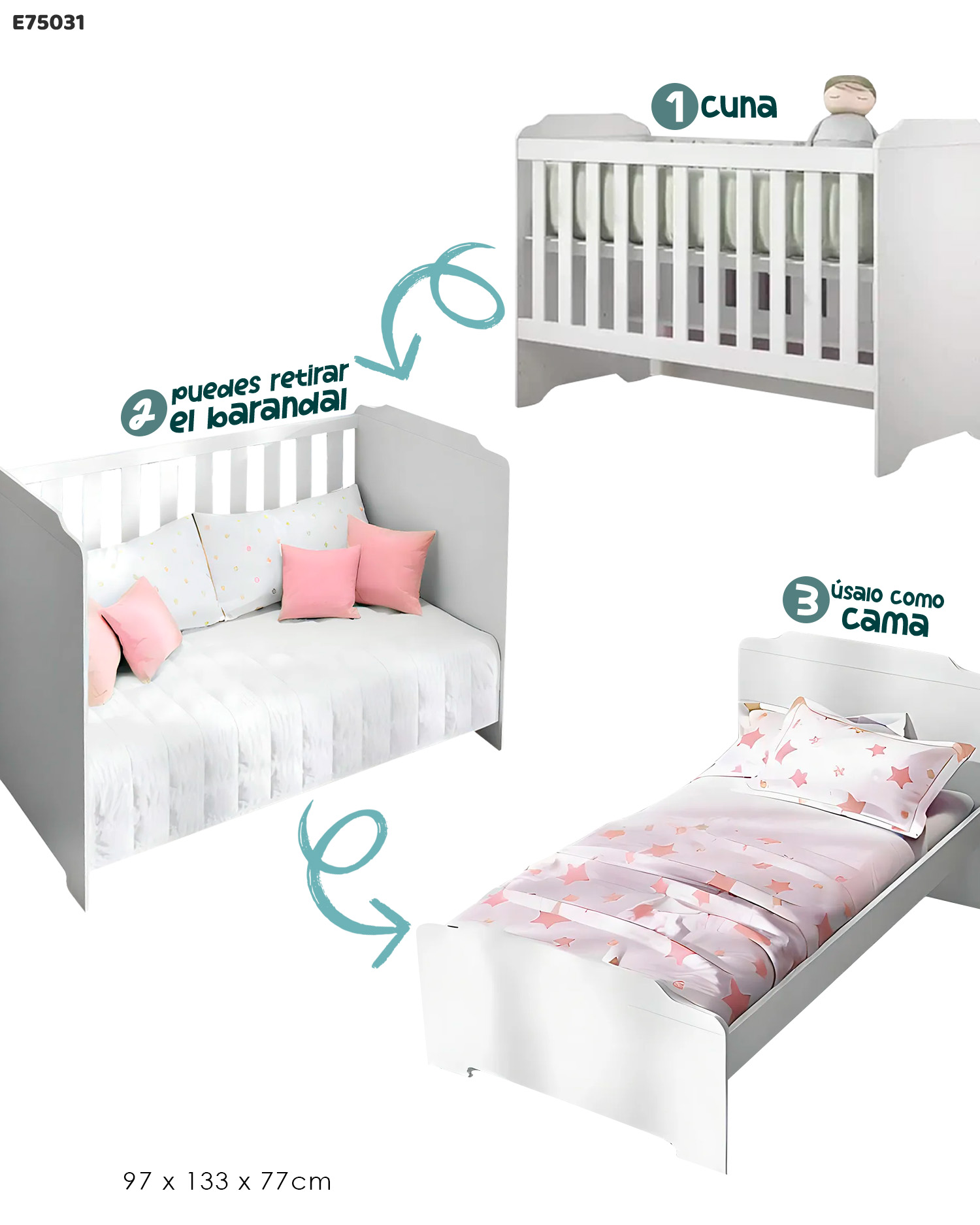 Cuna cama 3 etapas color blanco